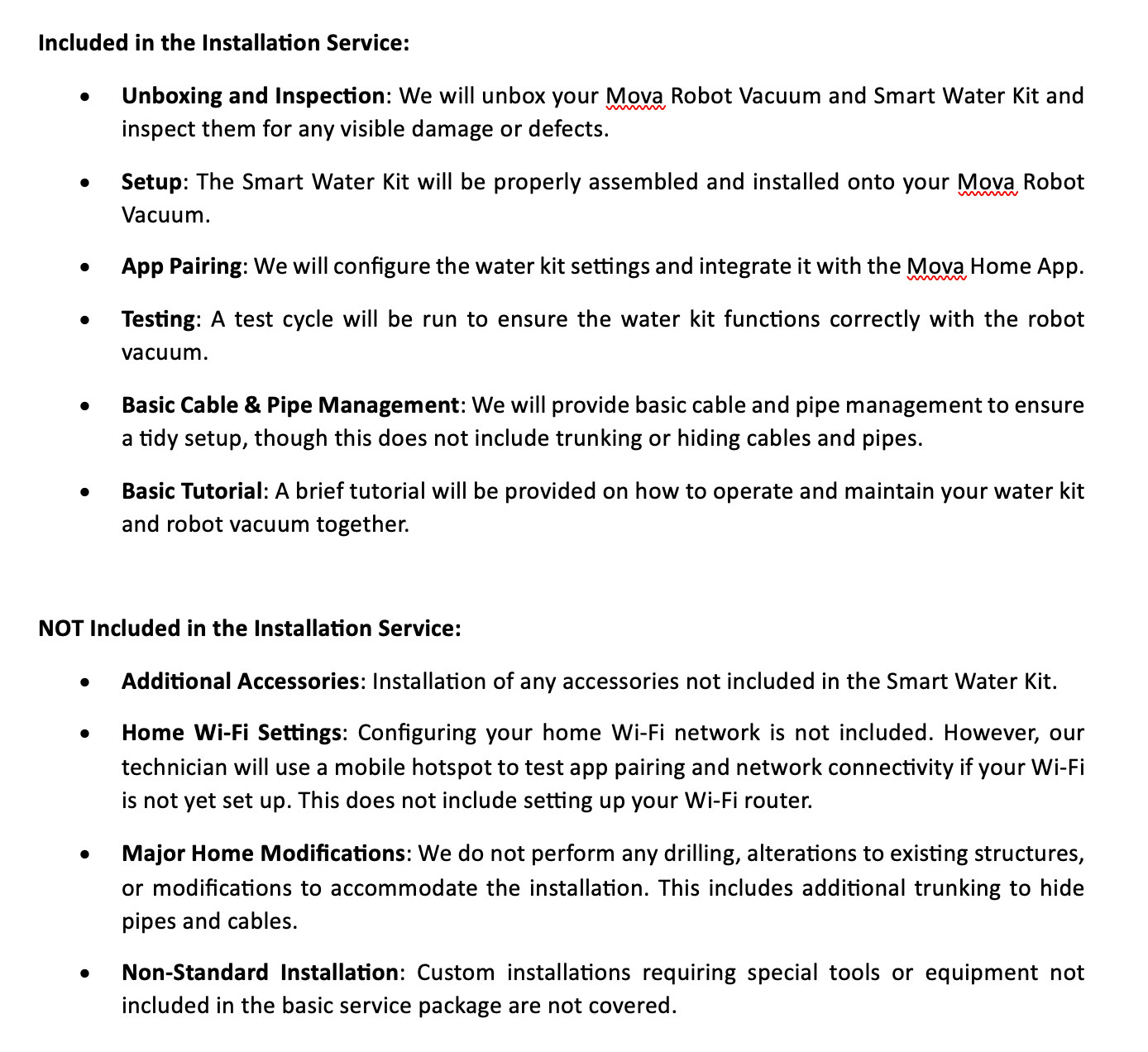 1. Order your Mova Z50 Ultra Robot Vacuum and Water Hookup Kit from Movasg, select the option with installation service.