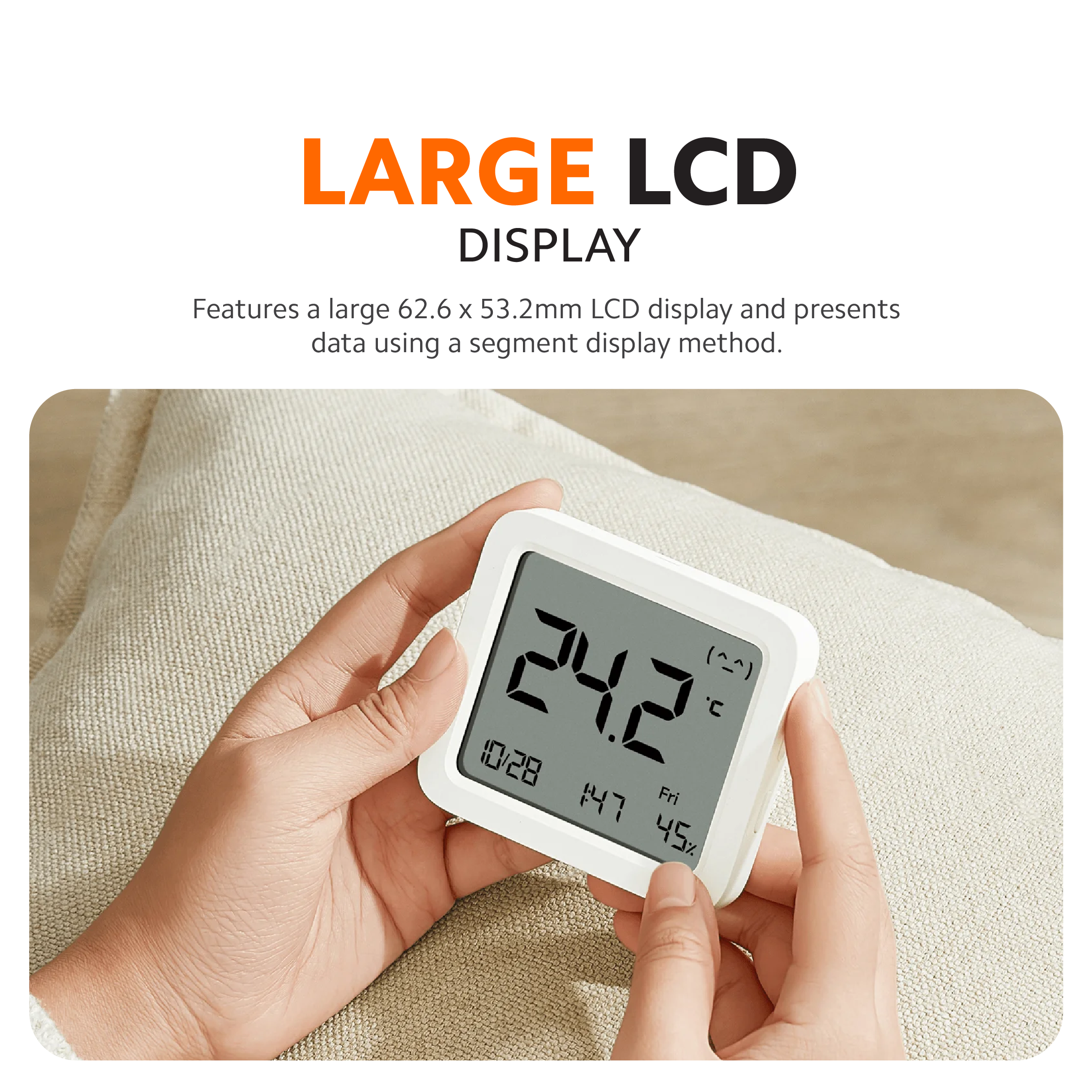 📊【Large Multi-Function Display】Shows temperature, humidity, date, day, time, and comfort level all on one clear screen.