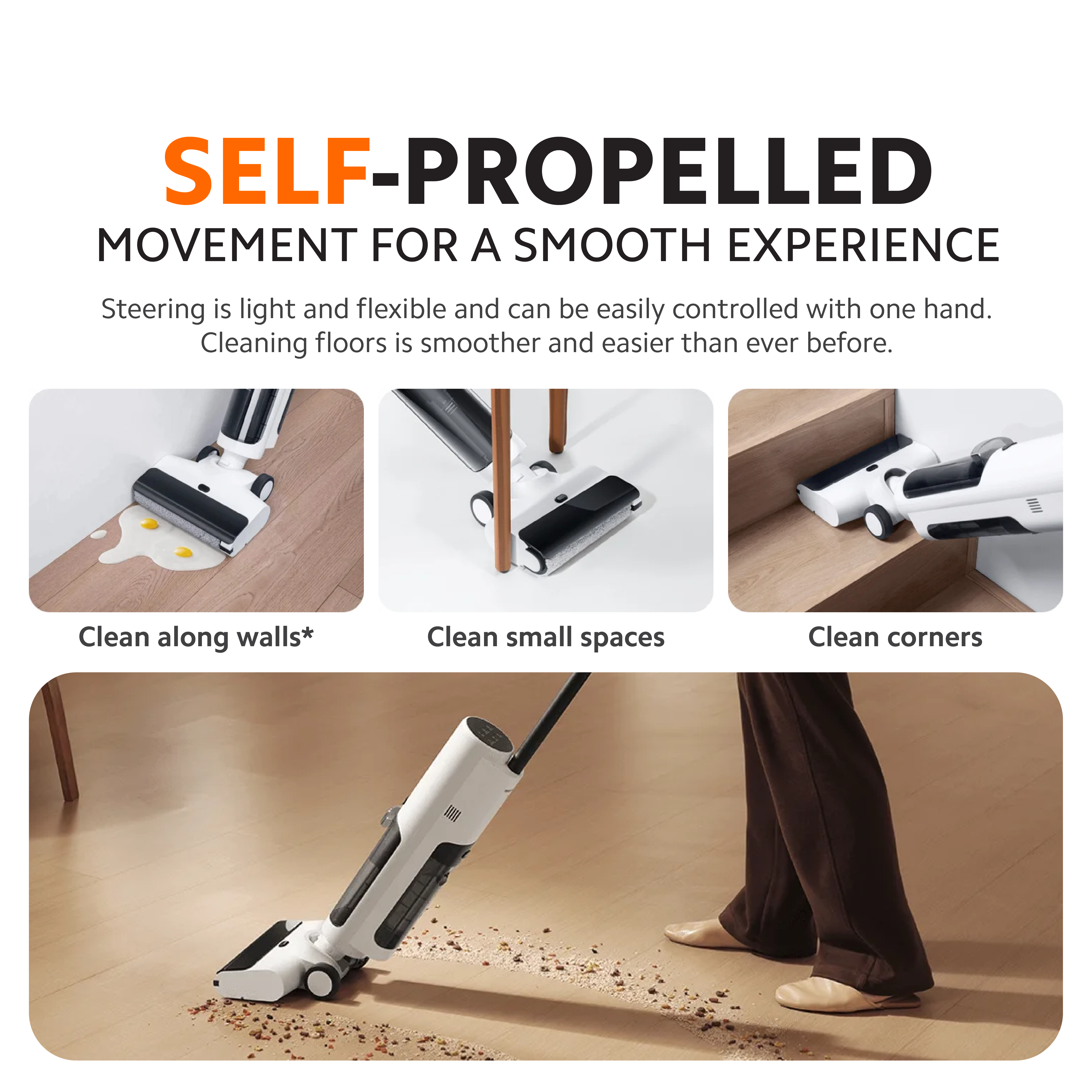 ๐ซงใ3-in-1 Wet & Dry CleaningใCombines vacuuming, mopping, and self-cleaning to handle both wet and dry dirt in one go, simplifying your cleaning tasks.