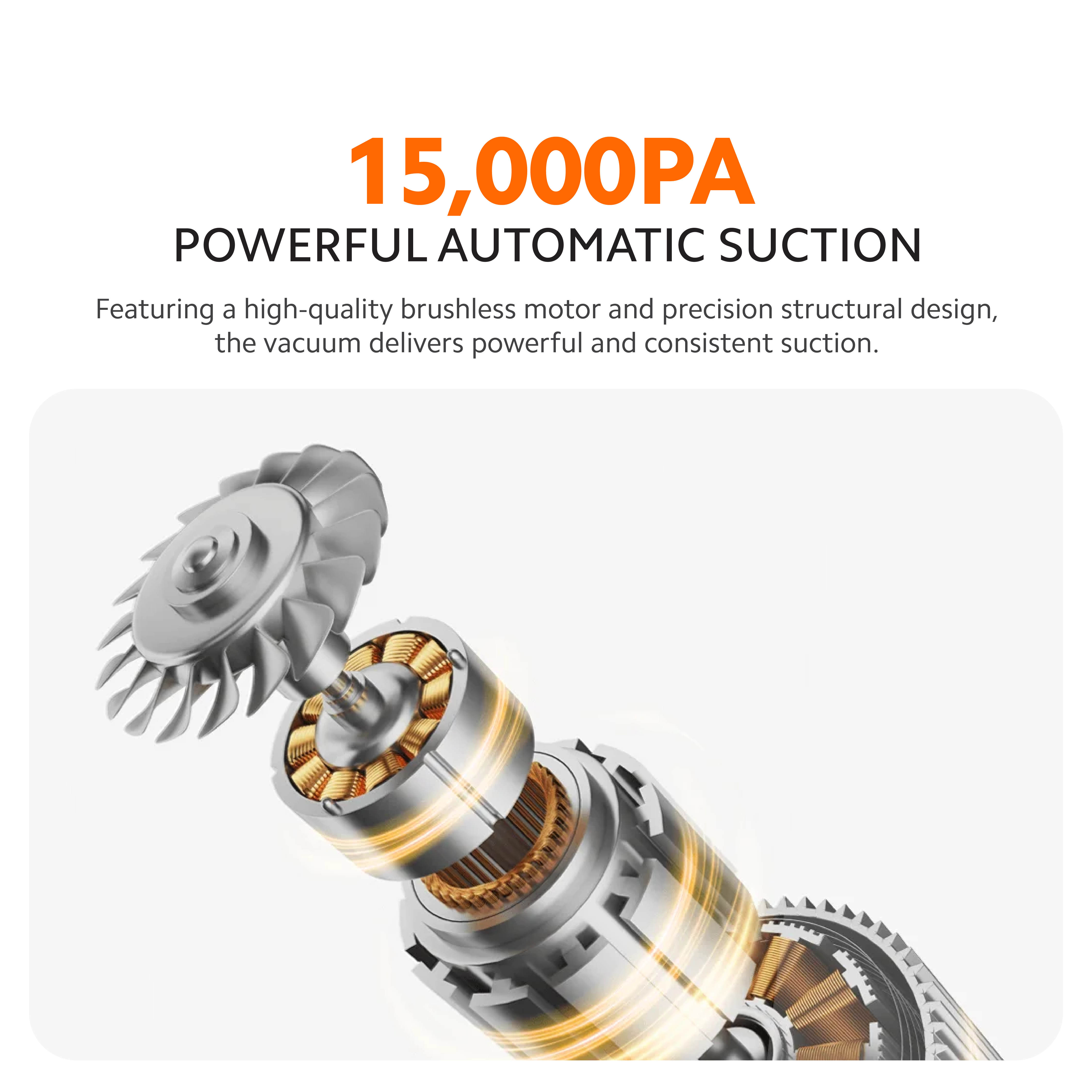 ๐ซงใ15,000Pa Powerful SuctionใEquipped with a high-speed motor providing strong suction to tackle tough dirt and debris.
